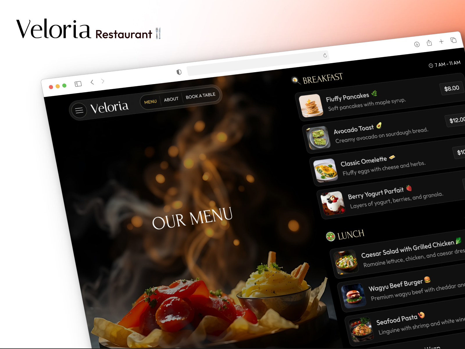 Preview Link: https://veloriarestaurant.framer.website/ Description: Veloria Restaurant is an elegant Framer template designed for upscale dining establishments to beautifully showcase their menu and ambiance. Perfect for fine dining restaurants, cafes, and bistros, it features a modern layout with smooth animations and interactive elements, creating an immersive user experience. With a seamless table reservation system, responsive design, and full customization, Veloria Restaurant ensures a premium online journey for guests. SEO-optimized and easy to use, this template lets you present your brand identity effortlessly, inviting customers to dine in style. 🔒 License:You are granted permission to use this template for one single project, either personal or commercial — such as your own website or a client’s project. ❌ Redistribution, resale, or inclusion of the files in other products or templates for sale is not allowed. ❌ You may not publish the files online or share/distribute them for free. If you want to use this template for unlimited websites for personal, commercial, and client projects, you will need to buy the Extended License. 💸 Refund Policy:Due to the nature of digital products, all purchases are non-refundable. Please review the preview and product details carefully before purchasing. If you have any questions or concerns, feel free to reach out — we’re happy to help.🎁 Exclusive Offer:Get 3 months of Framer Pro FREE when you purchase this template! Use code: partner25proyearly at checkout (valid on the Framer annual plan).